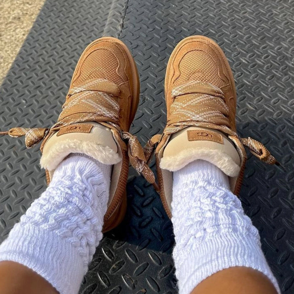 Perfekt dämpade och designade för heldagsbruk – de hänger med i varje plan, varje steg, varje ögonblick. Den miljövänliga sulan känns viktlös men ger stöd som inget annat. Från morgonkaffet till sena kvällspromenader – du kommer aldrig vilja ta av dem!