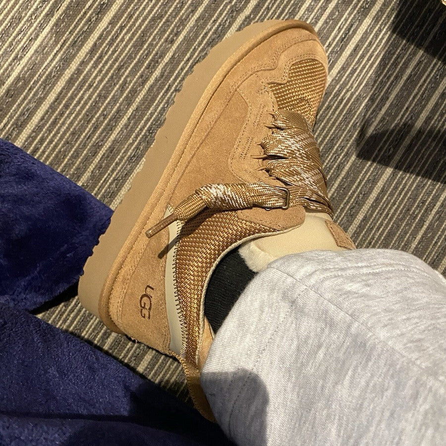 Mjuk mocka, luftig mesh och djärva snören möts i en look som utstrålar självsäkerhet utan ansträngning. Varje steg känns som att gå på moln — lätt, smidigt och overkligt. Jeans, kjolar, joggers — oavsett din stil får dessa sneakers varje outfit att se bättre ut, utan att ens försöka.